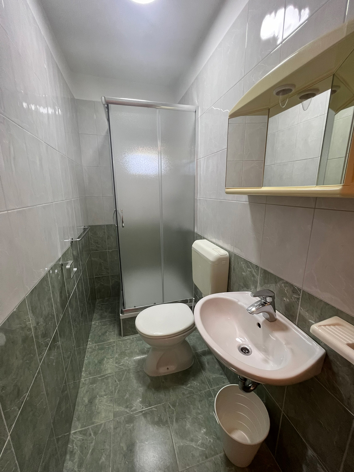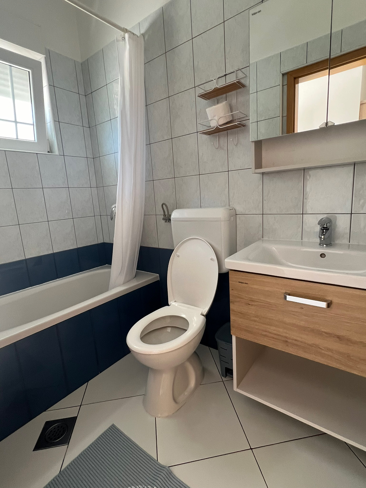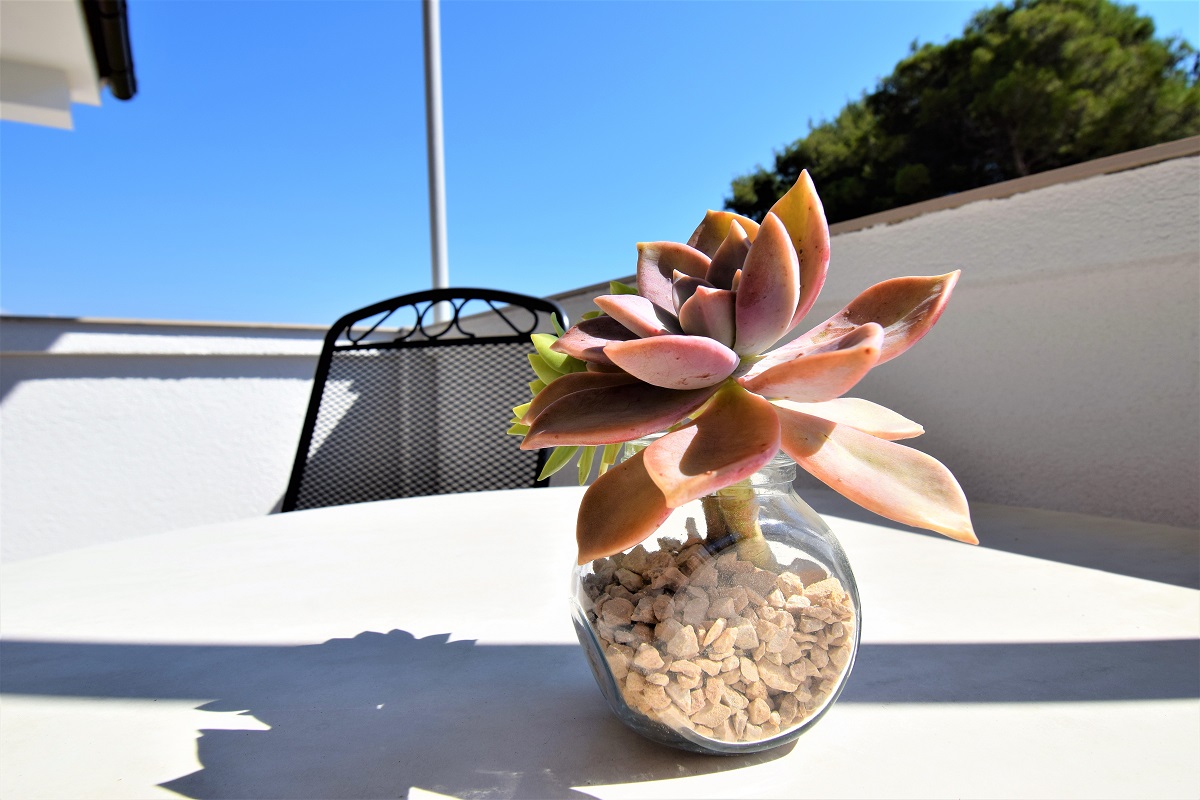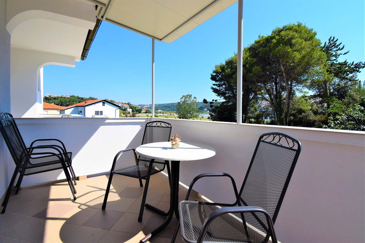 Obiteljski apartmanApartman se nalazi na prvom katu kuće. Ima jednu spavaću sobu koja može smjestiti dvije osobe, kupaonicu te potpuno opremljenu kuhinju u sklopu s dnevnim boravkom (štednjak, hladnjak, mikrovalna pećnica, kuhalo za vodu, aparat za filter kavu i ostali kuhinjski pribor). Apartman ima čak dva balkona za uživanje u pogledu na more. Apartman je klimatiziran, ima besplatan Wifi i satelitsku TV.