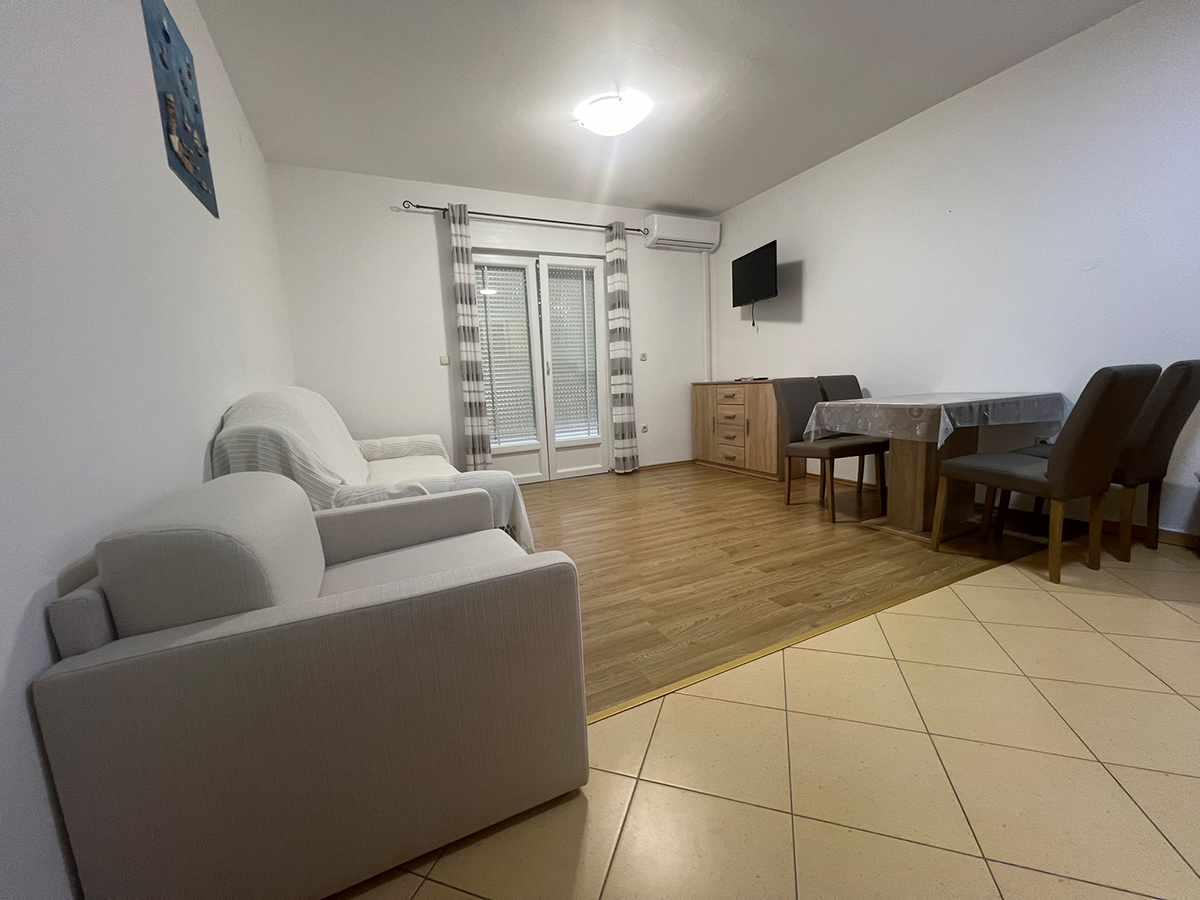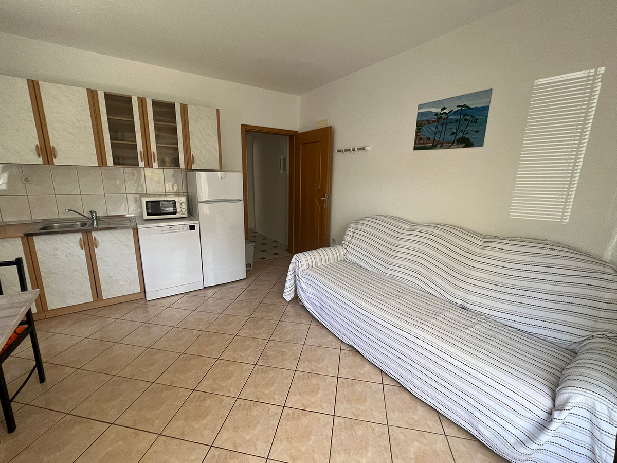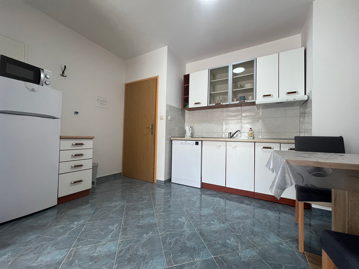 Obiteljski apartmanApartman se nalazi u prizemlju kuće i ima balkon sa pogledom na more. U apartmanu se nalazi jedna soba za dvije osobe, kupaonica i potpuno opremljena kuhinja sa dnevnim boravkom (štednjak, hladnjak, mikrovalna pećnica, kuhalo za vodu, aparat za filter kavu i ostalo). Apartman je klimatiziran, ima satelitsku televiziju i besplatan wifi za bezbrižno uživanje u godišnjem odmoru!