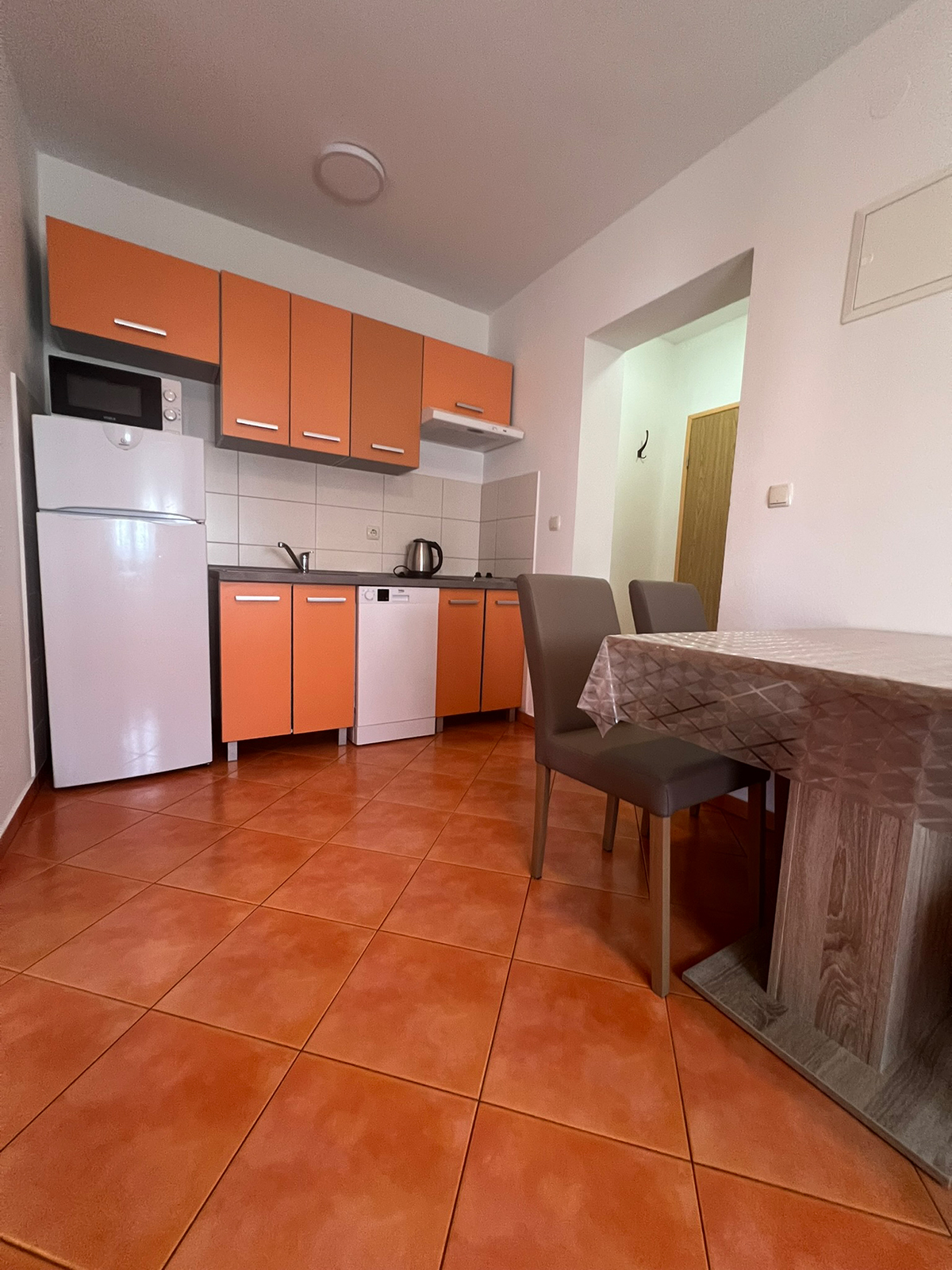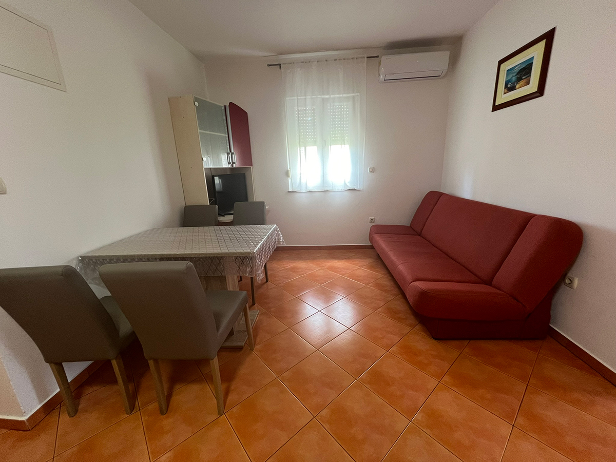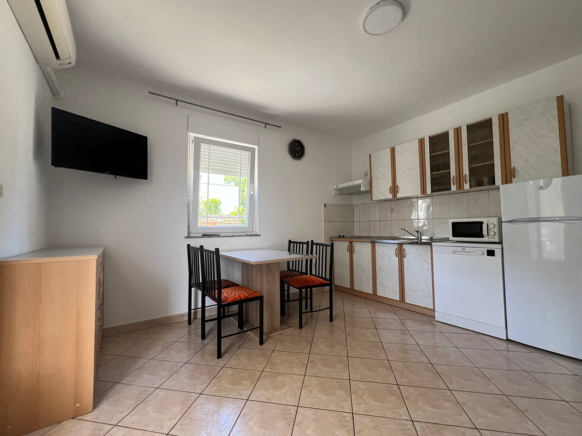 Obiteljski apartmanApartman se nalazi u prizemlju kuće i ima balkon sa pogledom na more. U apartmanu se nalazi jedna soba za dvije osobe, kupaonica i potpuno opremljena kuhinja sa dnevnim boravkom (štednjak, hladnjak, mikrovalna pećnica, kuhalo za vodu, aparat za filter kavu i ostalo). Apartman je klimatiziran, ima satelitsku televiziju i besplatan wifi za bezbrižno uživanje u godišnjem odmoru!