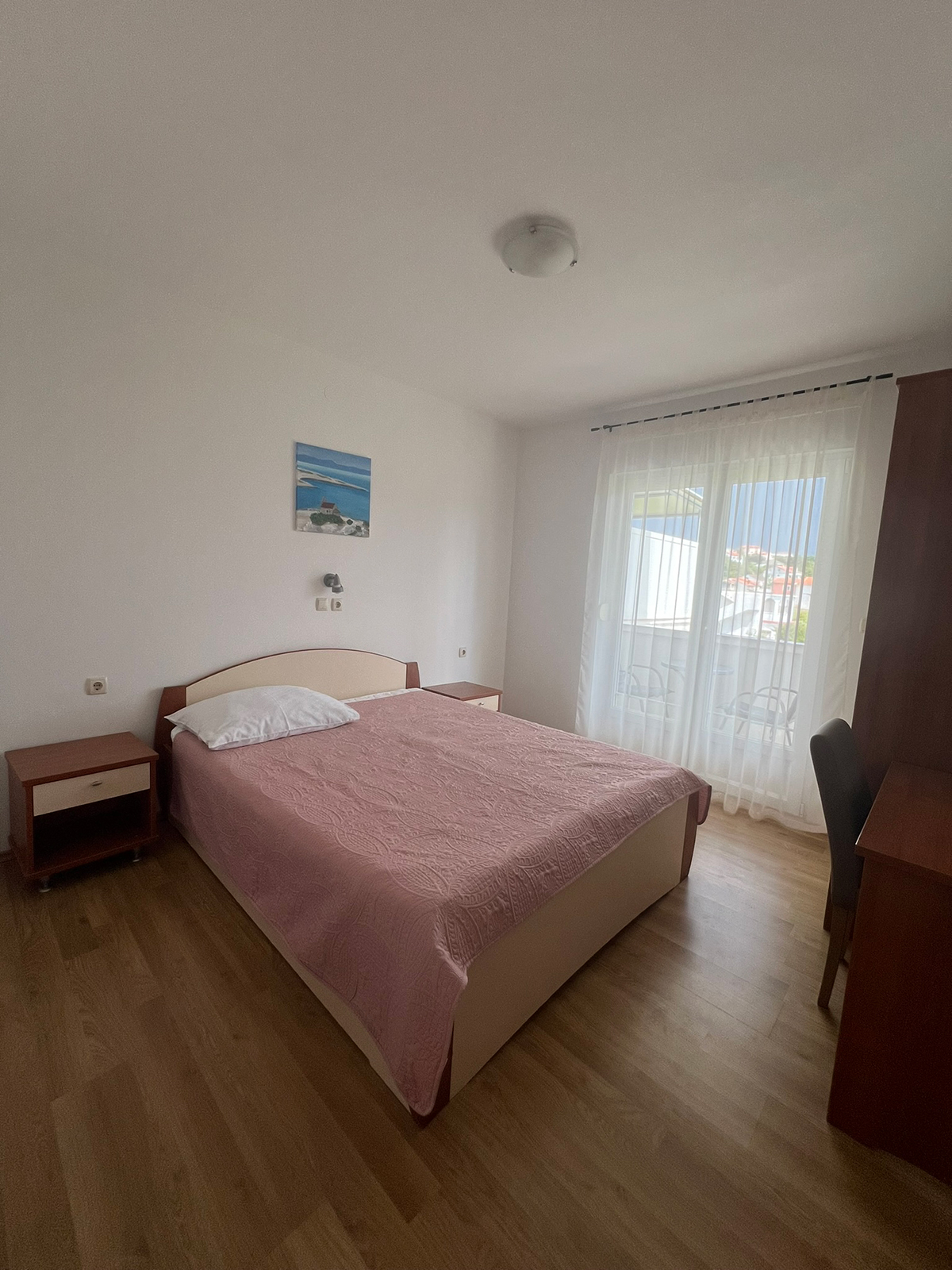 Obiteljski apartmanApartman se nalazi na prvom katu kuće, a ima jednu spavaću sobu za dvije osobe, kupaonicu i prostoriju u kojoj se nalaze kuhinja i dnevni boravak. Kuhinja ima štednjak, hladnjak, mirkovalnu pećnicu, kuhalo za vodu, aparat za filter kavu i ostala kuhinjska pomagala. Apartman je klimatiziran, ima satelitsku TV i besplatan Internet. Balkon sa pogledom na more biti će vaše omiljeno mjesto u apartmanu!